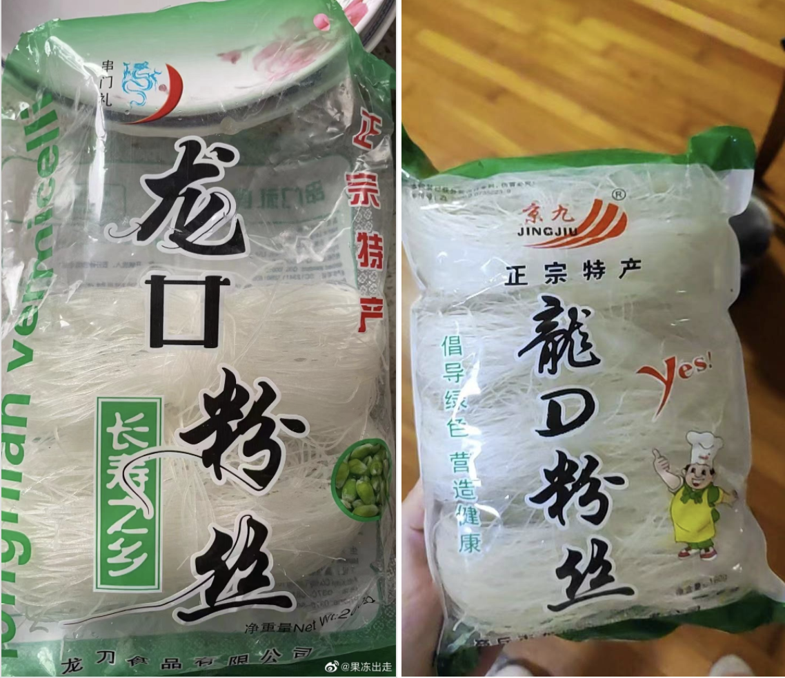 4月17日,闵行区虹桥镇锦绣江南小区一期欢然居居平易近收到虹桥镇镇派送的第四批物资,包罗粉丝、腐竹等。4月18、4月19日,居平易近正在开袋食用过程中连续发觉多个商品尝道非常。正在查抄过程中居平易近发觉,保供物资中的“龙口”粉丝实为“龙仁”粉丝,出产厂家夏邑县汇龙食物无限公司早正在2020年5月就已登记。此外,也有居平易近反映其收到了形式多样的“龙口“粉丝。有网友评论道,正在封控期间正在粉丝包拆上认识了生僻字。此次发放物资中“龙仁粉丝”的出产商是夏邑县汇龙食物无限公司。企查查消息显示,该公司注册地址是夏邑县孔庄乡开辟区社区。注册资金100万人平易近币,实缴资金20万人平易近币,法人代表为冯永旗,企查查显示该企业已登记。据社交上的会商显示,正在2021年就有消费者会商该产物存正在混合品牌名的做法。该产物包拆上的“龙仁粉丝”字样会让消费者误认为是“龙口粉丝”,只要查看后背细致出产消息后才能看到“龙仁粉丝”字样。此次物资发放时显示的出产日期是2022年2月,而该企业于2020年6月就申请登记。